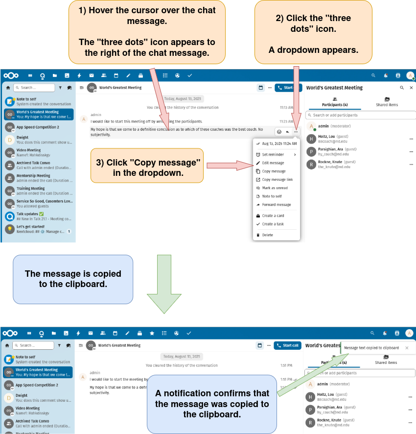 Copy A Chat Message To The Clipboard In A Conversation In Nextcloud Talk