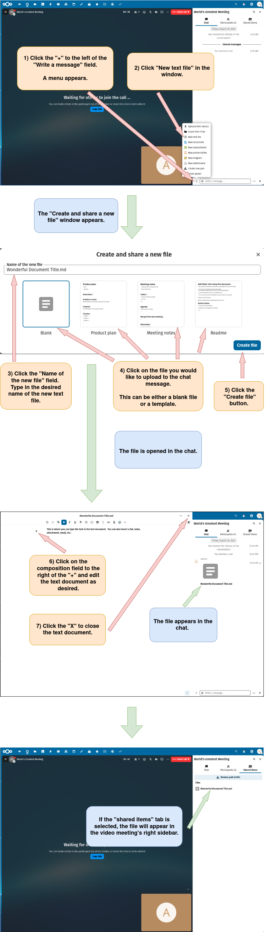 4) Create a text file within a chat in a Nextcloud Talk video meeting.