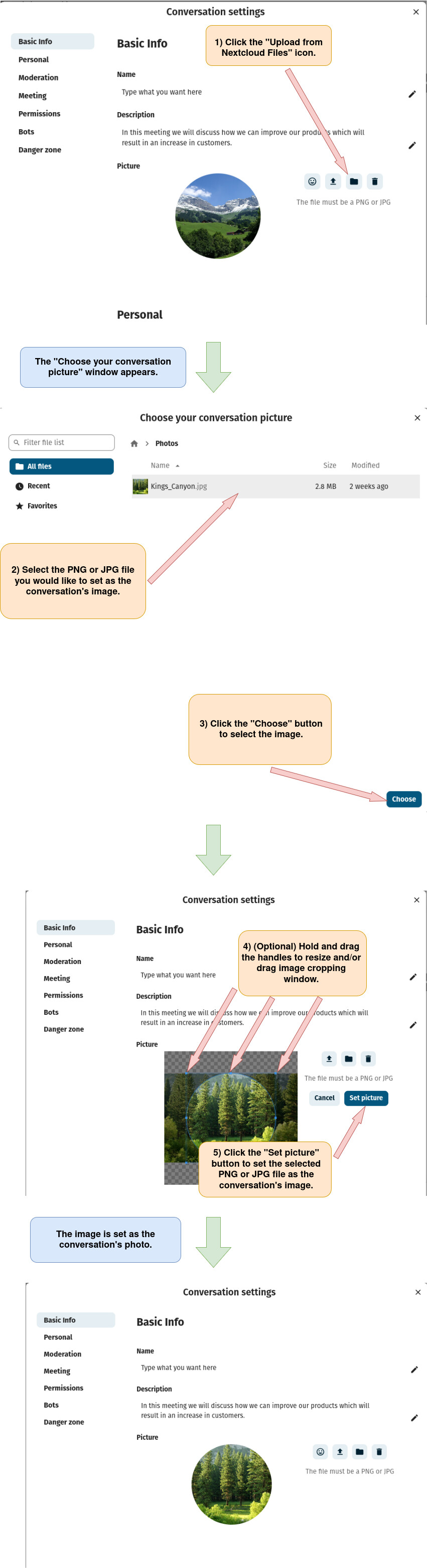 4) Upload a photo from Nextcloud Files for use as a conversation’s photo.