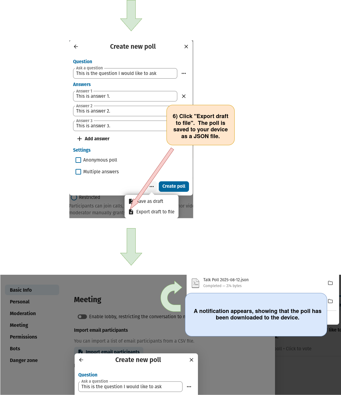 4) Configure the poll and export the poll draft to your device as a JSON file.