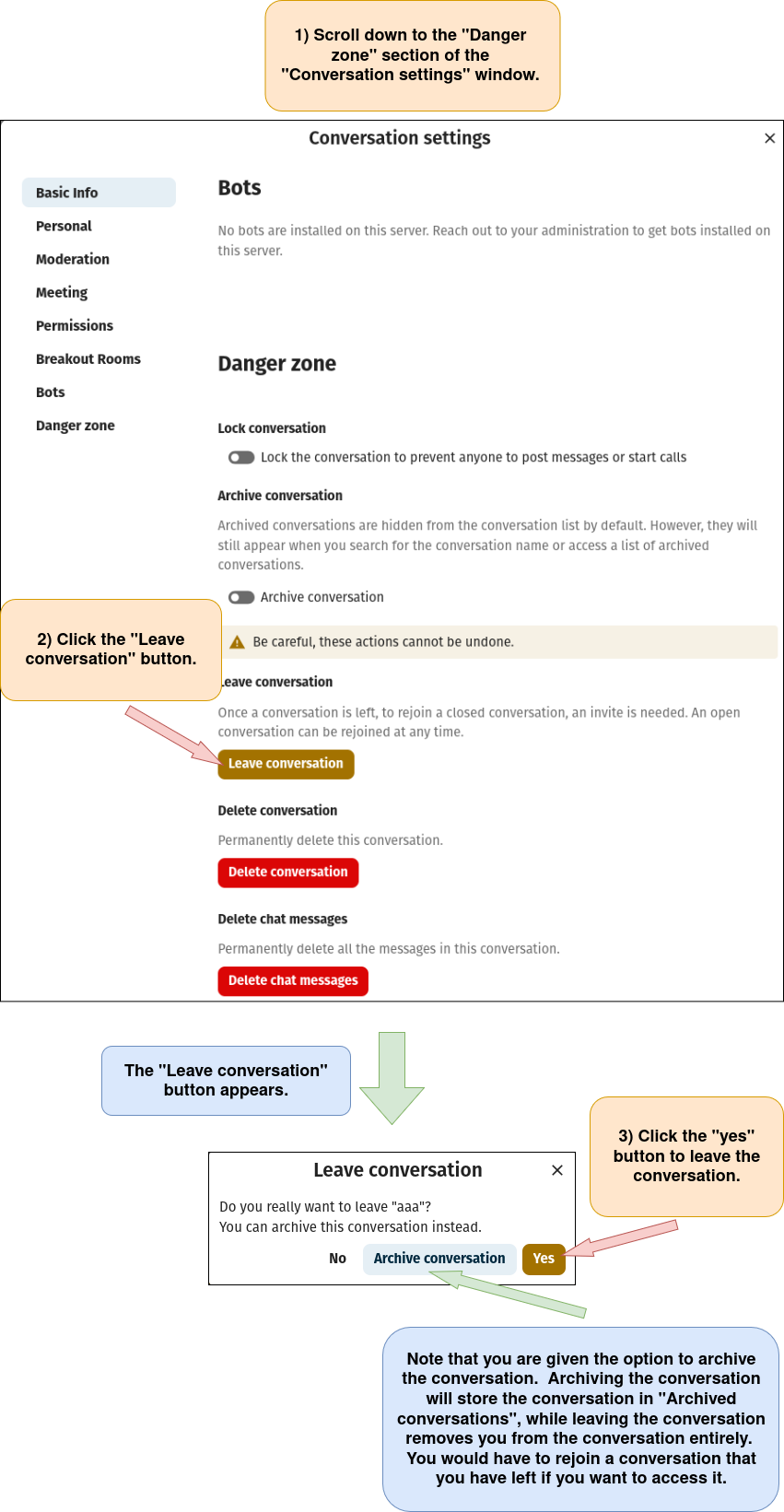 Option 2: Leave the video meeting via the “Conversation settings” menu.