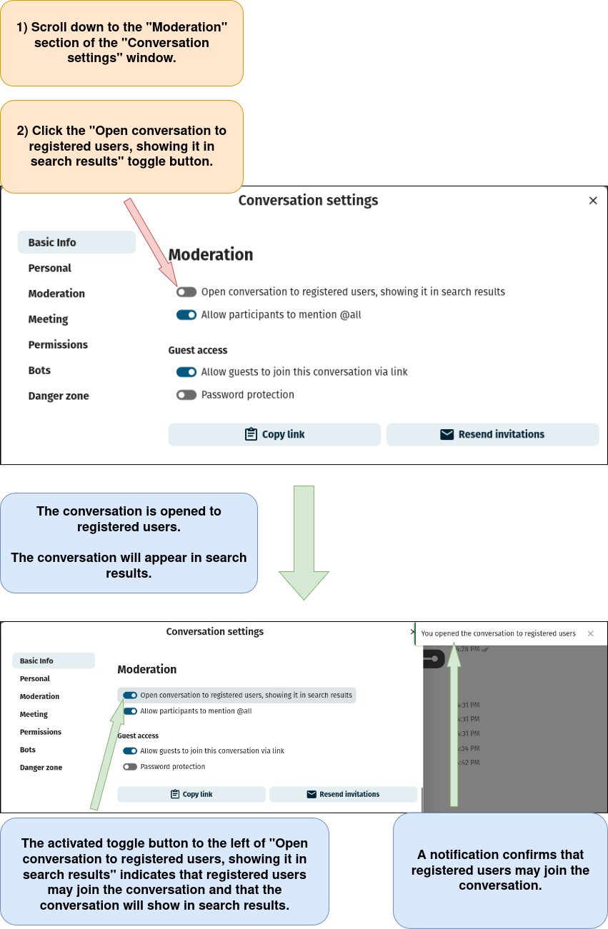 Open Conversation To Registered Users, Show The Conversation In Search Results Within Nextcloud Talk