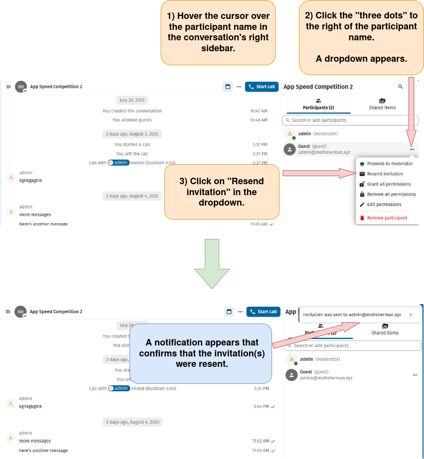 b) Resend the invitations to a chat conversation from inside the conversation itself.