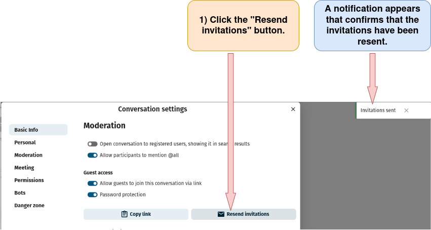 a) Resend invitations to a conversation through the “Conversation settings” window.