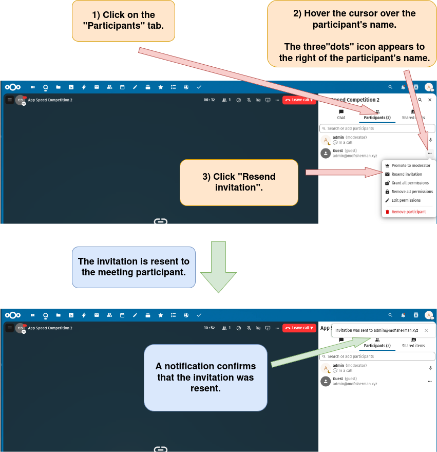 3) Resend the invitations to the Nextcloud Talk conversation.