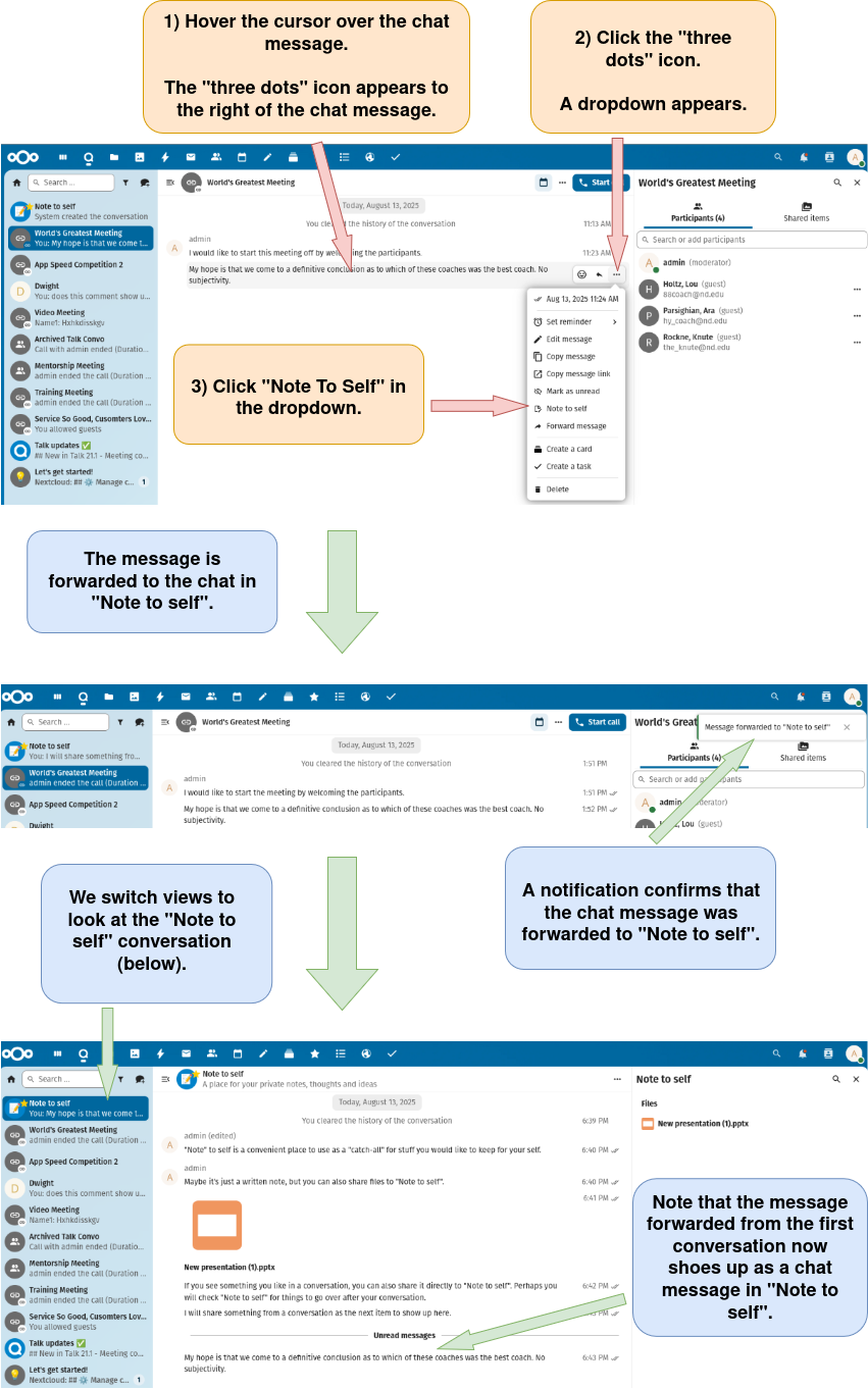 Send A Chat Message From A Nextcloud Talk Conversation To “Note To Self”