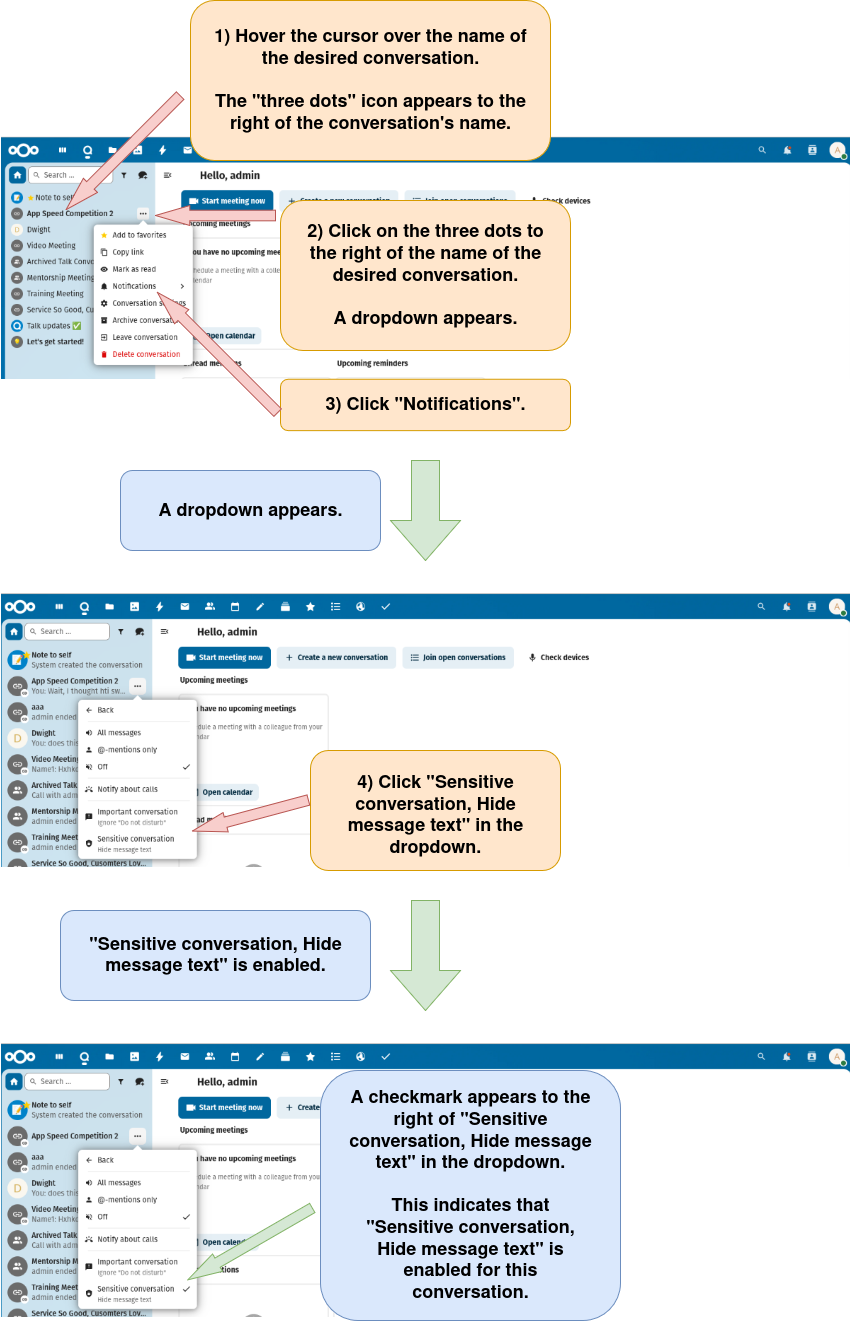 Make A Conversation A Sensitive Conversation Whose Text Is Hidden, Nextcloud Talk