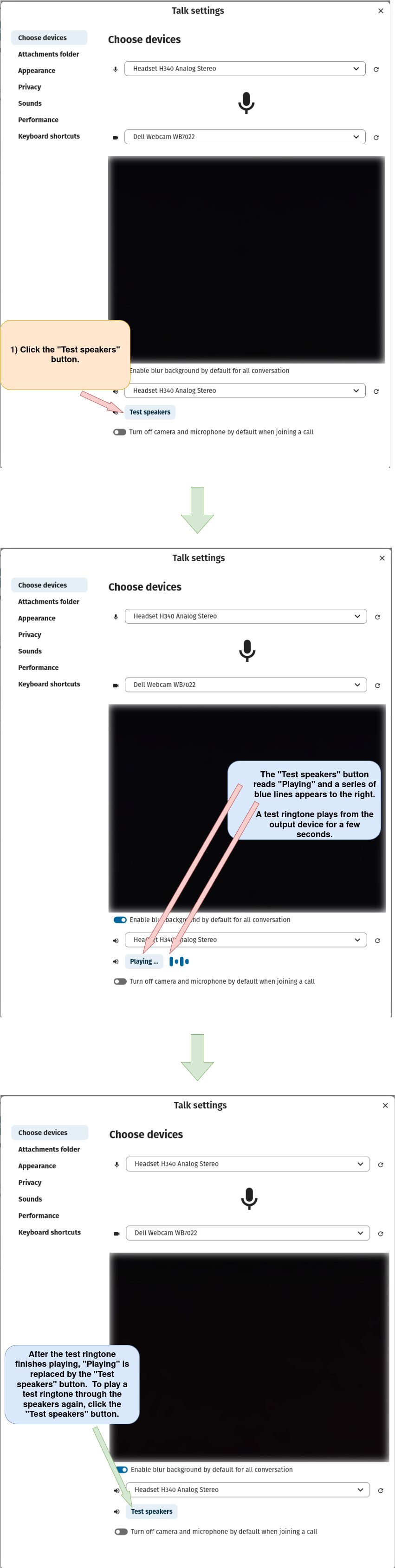 4) Test speakers/audio output device used for Nextcloud Talk conversations or video meetings.